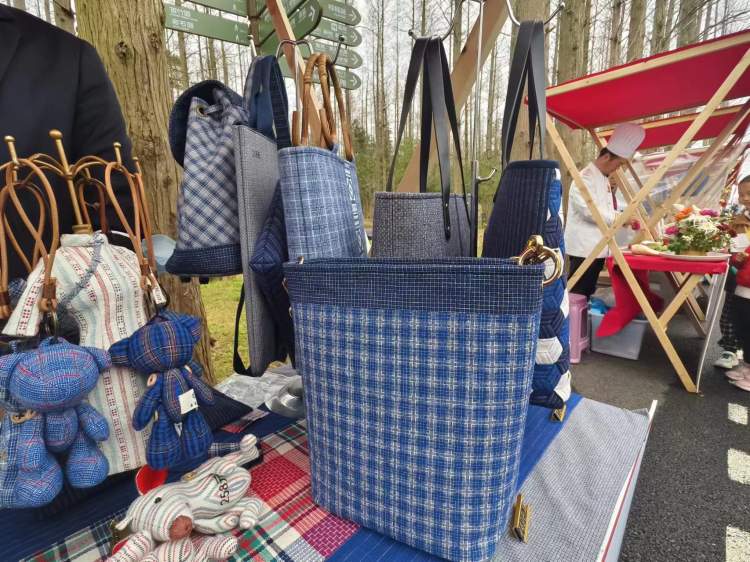 “这个包很好看。”“江海市集”上,用崇明土布制作的包包吸引了众多观众的注意。摊位工作人员介绍说,这是他们最受欢迎的崇明土布包包之一,采用芦纹和小格子纹的土布进行拼接制作,让土布也时尚,而且背出去不会“撞包”。