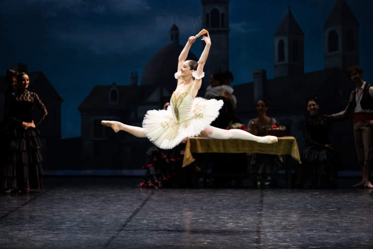 如果用一个词去形容芭蕾舞剧《堂·吉诃德》那便是“炫技巅峰”。全剧两个多小时中,竟然有近十个独舞变奏成为如今各大国际芭蕾赛事中的得分“神器”和重量级芭蕾庆典演出上的重头戏。而《堂·吉诃德》(第三幕)集无数芭蕾必打卡名场面,婚礼女傧相双人舞、婚礼巴西利奥男变奏、婚礼吉特莉女变奏等,在嬉笑幽默的剧情进行之余,让想看“炫技”的观众大饱眼福。