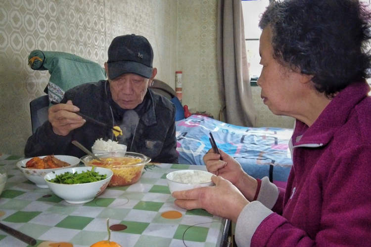 我年轻的时候照顾妹妹、照顾妈妈,老了之后就照顾他了。别看他不说,我心里明白,他对我好。年轻的时候,我在金山区上班,一周才能回家一次,那时候,家里都是他照顾的,包括我80多岁的妈妈。记得有一次,我买了素菜,吃了之后中毒了,我在金山发烧,我妈妈在家中上吐下泻,是他把我妈妈送到医院,陪夜陪到了第二天早上。我妈妈拉屎拉在裤子上面了,藏起来不让他看见,他把脏衣服找出来洗了。你说我感动不感动?这些事我都要记住的。对我来说,现在最重要的就是他了。”