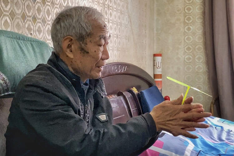 ▲冯叔叔在玩竹蜻蜓