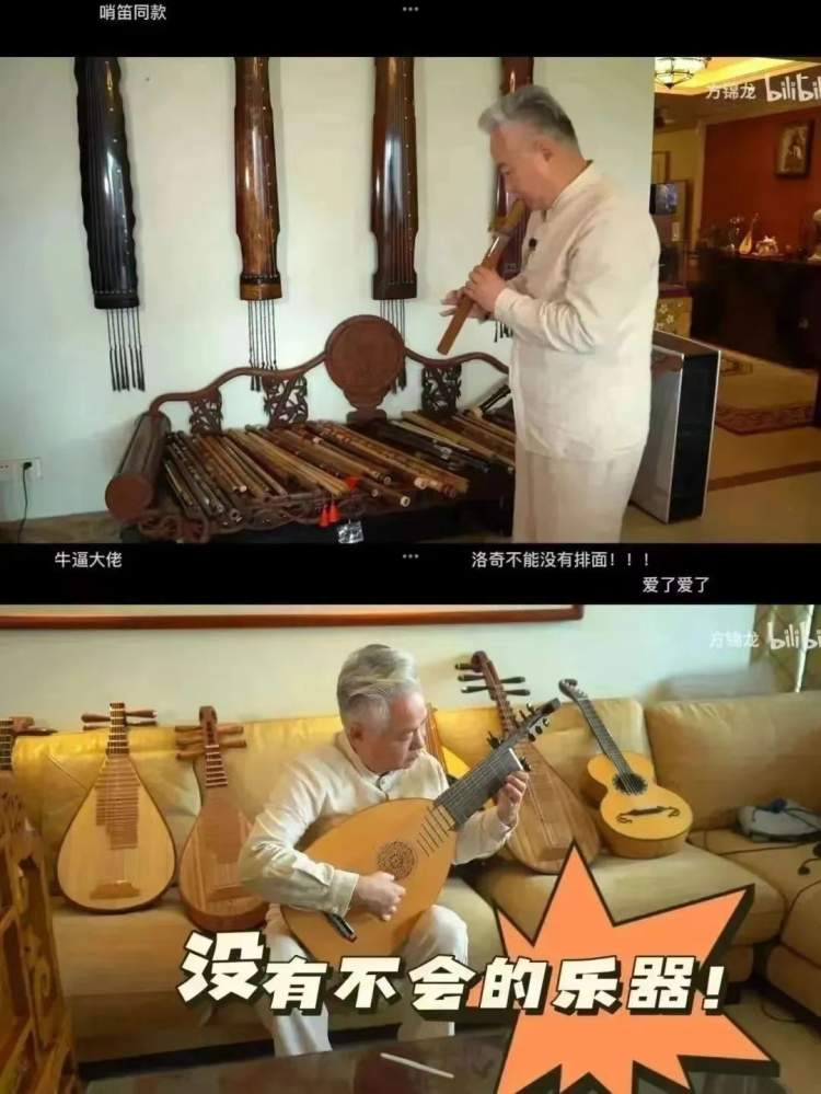 “时间就像海绵里的水,只要愿挤总还是有的。”日复一日的练习,提升了方锦龙的琵琶弹奏技巧。而让他真正“出圈”的,是“十八般乐器”信手捏来,被网友戏称为“乐器成精”。