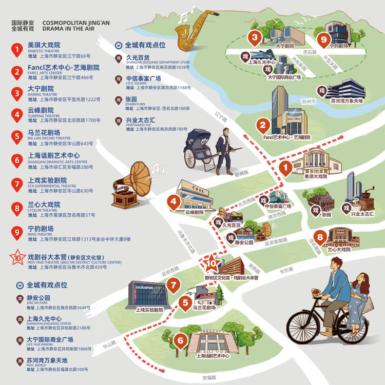 首次推出的“戏剧修炼地图”和“戏剧图书漂流”,同样刻写了静安高辨识度。“戏剧修炼地图”从4月开启,为市民们带来属于静安独一无二的city walk线路,穿梭于城市的各个角落,寻找隐藏在日常生活中的戏剧元素,也收获意外的惠民福利。