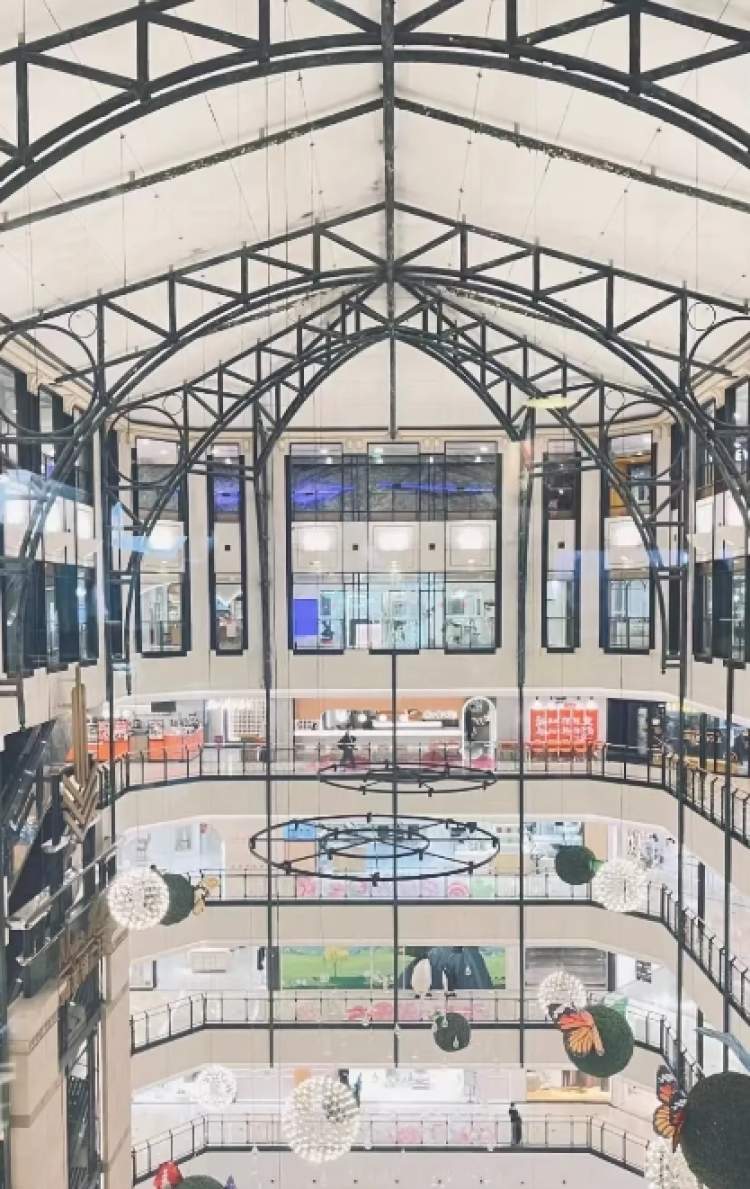 梅龙镇广场当初亮相南京西路时,就惊艳了整个城市,商场建筑外观融合了欧陆设计特色,典雅又瑰丽。内部从底层一直延伸到七层的中庭,其辉煌、明亮让当时的上海人叹为观止,俨然一个迷人的“购物天堂”。
