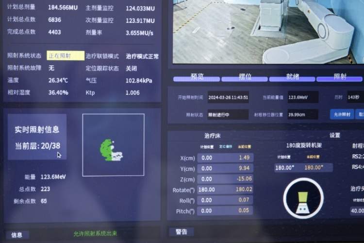 正在调试中的360度旋转治疗系统与已投入使用的180度治疗系统相比,新一代的系统整体更加紧凑,但旋转范围更广,适配系统更精准,更有利于提高治疗灵活性和效率。同时,新系统结合新技术,扫描定位从二维平面增强改进为三维立体定位,可以更精确诊断肿瘤位置,特别是在精度定位复杂肿瘤上,做到提质增效。他表示,按照目前计划,该系统预计今年10月完成调试,后续将逐步向患者开放,为大家健康护航。