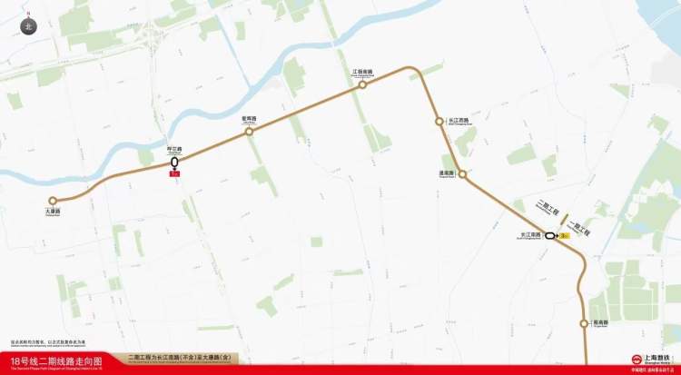 18号线二期位处宝山区,起于一期工程终点站长江南路站,至大康路站,正线长约8.1km,全部为地下线,共设6座车站。
