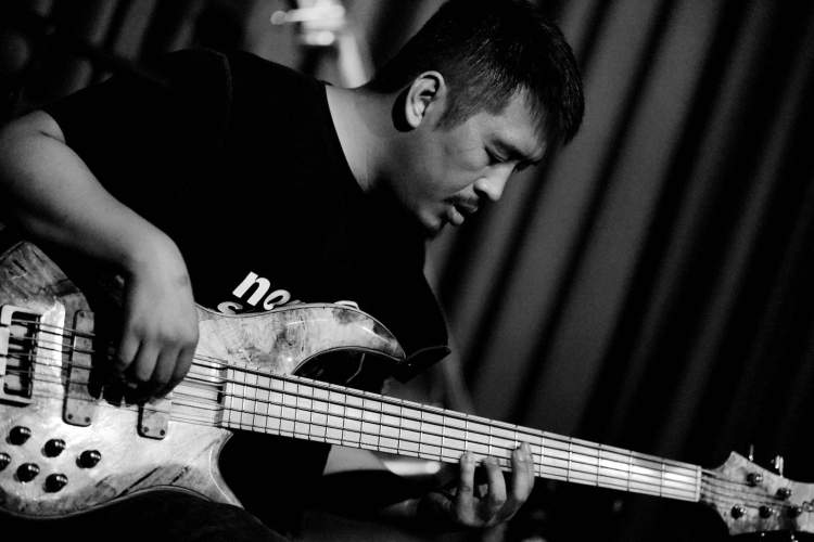 任宇清在弹奏电贝司