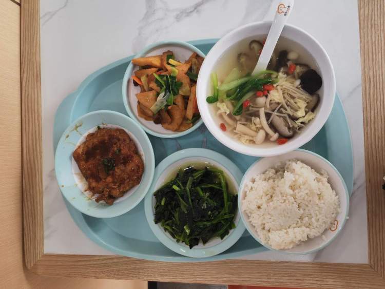 本次试吃的老年人主要来自周边国定一、财大、五一三个居民区,食堂准备了两荤两素,红烧大排、千叶豆腐、菠菜、例汤加一份饭老年人折后只需20元出头。食堂相关负责人表示,今后将提供早中晚三餐,菜品有60多种,价格低于市场价的20%左右。