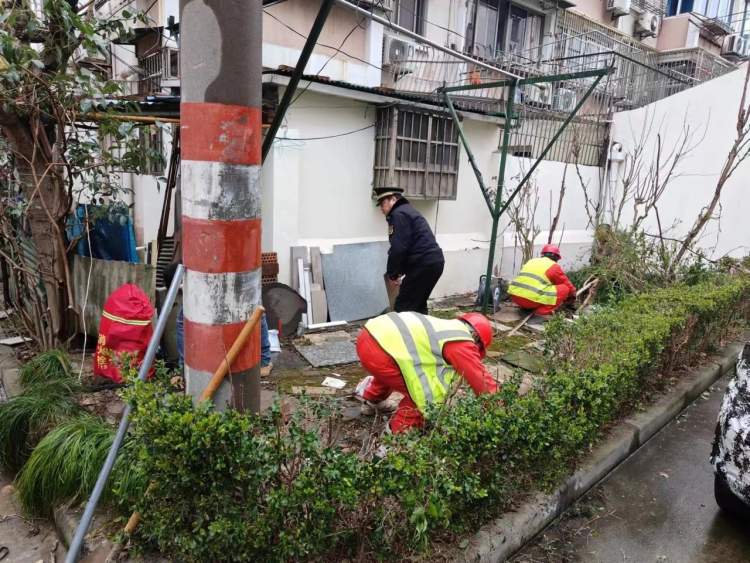 今年春节前夕,执法队接到市民投诉,反映本市仁德路67弄10支弄某号楼西侧存在占用绿地并搭建违章建筑的情况。经过执法队员现场核查,确认该处原本为居民区公共绿地,当事人擅自在此搭建,用于平日里堆放闲置杂物,盘踞在绿地中的建筑不仅影响了小区整体环境,也对来往居民的正常通行造成了安全隐患。