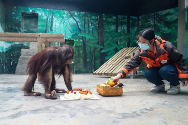当说起“葡萄”,平时话不多的保育员话匣子关不住了:“给 ‘葡萄’过生日,仪式感一定要拉满,生日礼物必须到位。我们的‘葡萄’不仅长得漂亮,性格也随和乖巧,情绪稳定的它当年在直播间可收获不少粉丝呢!其中还有不远万里来和‘葡萄’线下见面的粉丝。”
