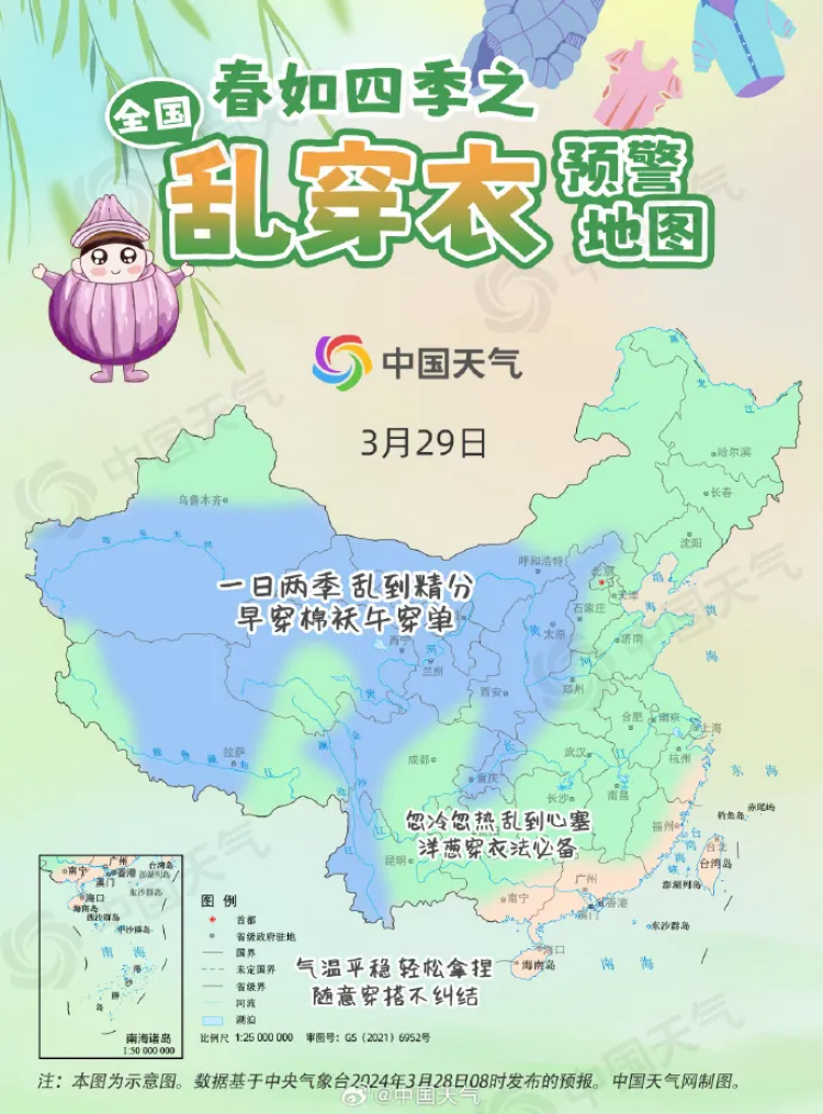 昼夜温差一大,就到了乱穿衣的时节,多穿一件嫌热、少穿一件则冷。中国天气网发布了乱穿衣预警地图,上海属于“忽冷忽热乱到心塞,洋葱穿衣法必备”的区域。