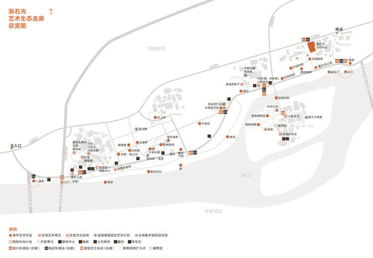 通过“龙游瀫畔·8090青年创造季”的研讨和实践,依托丰富的生态、历史和村庄资源,在学术鼎力团的支持下,携青年之力,以艺术为方,由8090后青年群体作为主力群策、群设、群创,继2022年8月18日创造季启动宣发仪式、2023年3月15日方案成果汇报会后,瀫石光·艺术生态走廊融合规划、建筑、艺术、设计、文化、策展等多元创造方案全部实施完成。