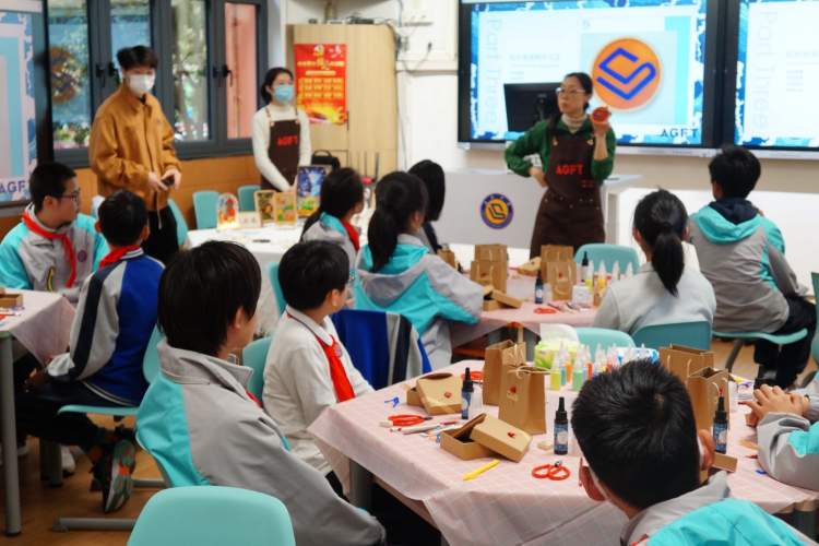 如今,国潮受到越来越多年轻人的青睐。“新国风”成为了当代年轻人流行的生活方式和时尚风向标。龙年的首次活动,“大国小工匠”走进绿苑小学、娄山中学,带领百余名青少年分别体验了珐琅工艺、皮具制作、编织艺术,在动手打磨作品的过程中体会技能的乐趣、感受国潮的魅力。