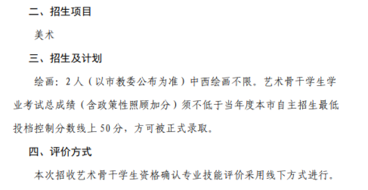 招生计划:绘画:3 人。(以上海市教委正式公布为准)