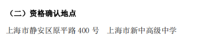 资格确认地点:上海市市北中学 地址:永兴路365号。