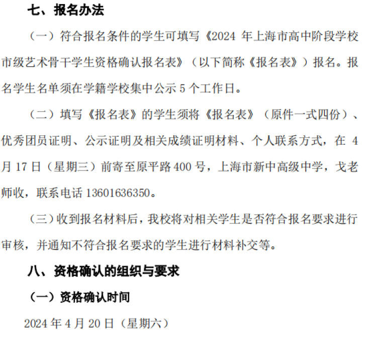 (一)符合报名条件的学生可填写《2024年上海市高中阶段学校市级艺术骨干学生资格确认报名表》报名。