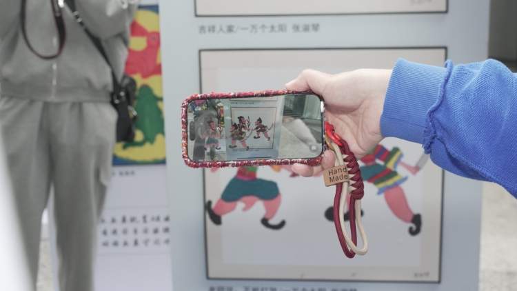 在线下,参观者打开钉钉App扫描画作后,可以通过手机可以看到画面“动起来”的奇妙效果。这得益于杭州师范大学数字媒体专业的同学们热情参与AR 创作,用自己的专业能力和艺术创造力来表达对孤独症儿童的关爱。