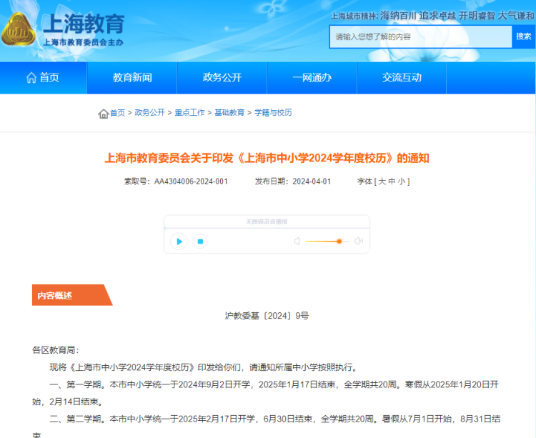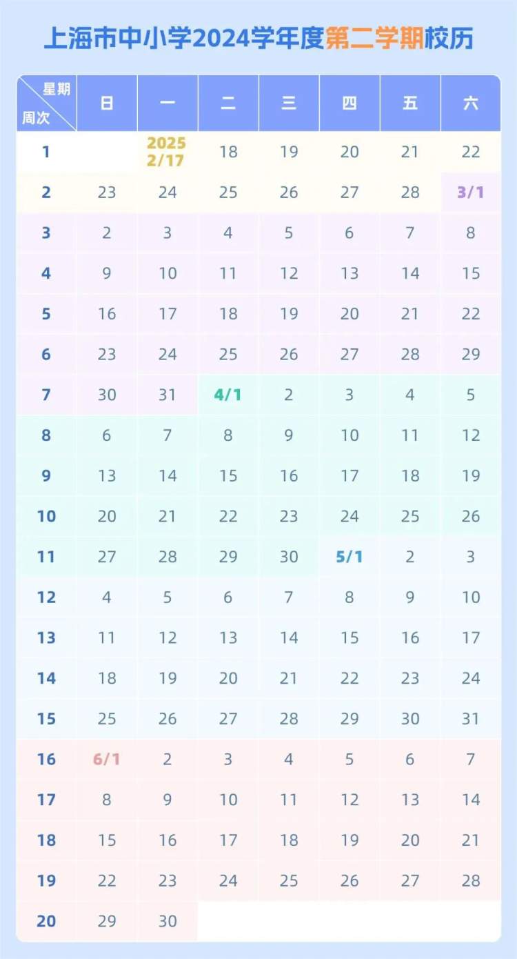 最新!市教委发布了《上海市中小学2024学年度校历》