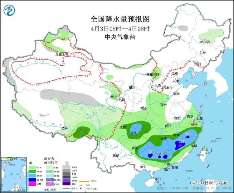 中央气象台今晨继续发布强对流天气橙色预警和暴雨蓝色预警。预计强降雨带将从长江中下游地区逐渐向南发展,继湖南、江西之后,广西、广东、福建等地也将出现以强对流为主的降雨过程。预计未来24小时,贵州东南部、广西北部、广东西北部、湖南南部、江西中南部、福建西北部、浙江南部、重庆南部等地部分地区有大到暴雨,其中,江西东南部、福建西部等地部分地区有大暴雨(100~120毫米);上述地区最大小时雨量30-50毫米,局地可达70毫米以上。湖南中南部、江西中南部、浙江中南部、福建西北部、贵州东南部、广西北部、广东北部等地的部分地区将有8-10级雷暴大风或冰雹天气,局地风力可达12级以上,最大冰雹直径20毫米以上;预计,强对流的主要影响时段为今天午后至夜间。