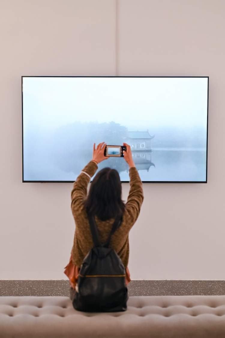 姜俊说,对于山水,古人有古人的媒介,当代人有这么多新的媒介,如果我们还是用传统的绘画去做,只能是描摹传统。当代艺术特别强调的是如何用当代的方式来描摹当代生活。当今信息时代,最火热的手段就是AI,还有表演、行为、跨媒介等艺术,这次“山水游”展览中就有不少这样的创作。
