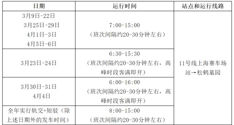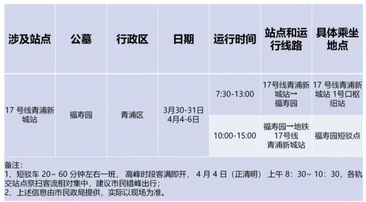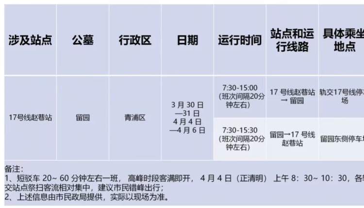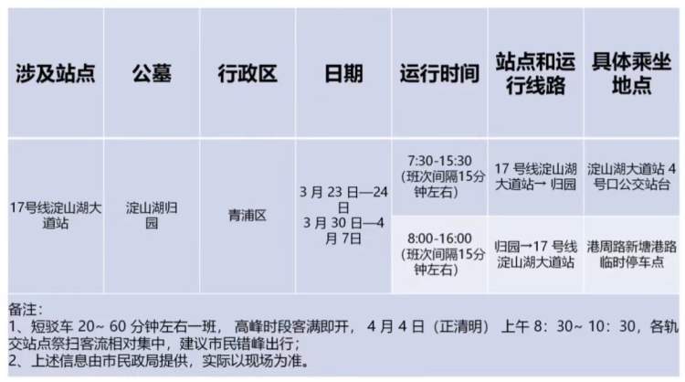 今年本市多家墓园仍延续推行“地铁+短驳”服务,具体情况如下: