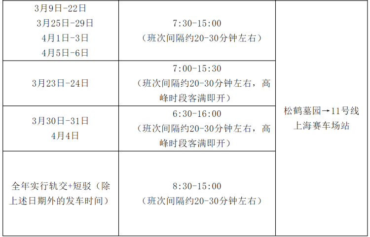短驳车时间:3月30日、31日,4月4日、5日、6日7:00-15:00