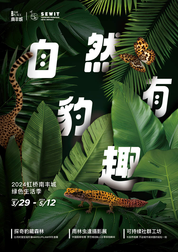 春日葱茏,焕发勃勃生机。2024年3月29日起,虹桥南丰城自然“豹”有趣绿色生活季正式来袭!活动联合“探奇豹藏森林”IP展、“雨林虫逢”摄影展、自然环保手作等多重版块,将绿色带进商场,邀请消费者体验治愈系慢生活,与虹桥南丰城在生机勃勃的绿色世界中一起进行“森”呼吸。