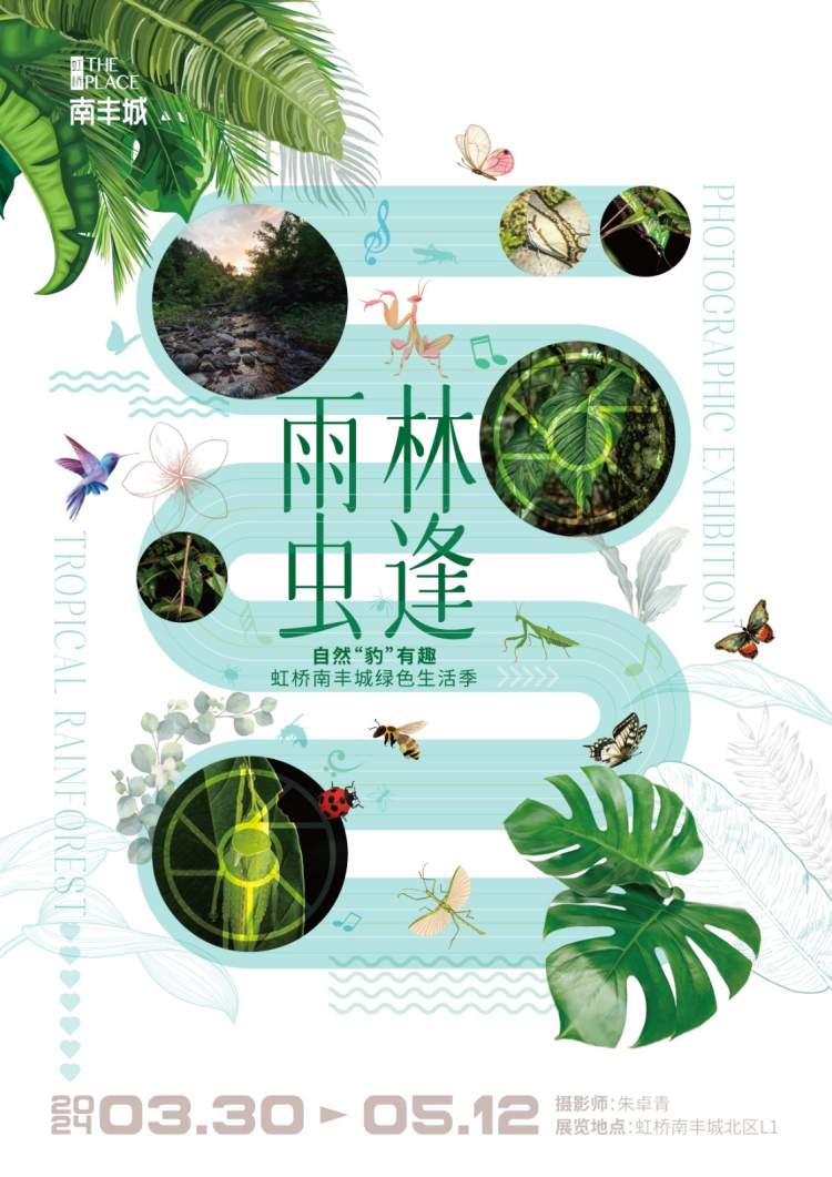 在北区中庭,联合亚马逊探险者、自然教育博主以及中国国家地理·梦巴格创始人朱卓青将于3月30日至5月12日期间呈现名为“雨林虫逢”的摄影展览。该摄影展选取了朱卓青在鸟语虫鸣相伴的旅程中所遇到的有趣生物和自然景观的35张精彩作品,带领观众进入充满未知的热带雨林,并邂逅不同寻常的雨林风景。走进展区时,会看到以绿植为主题的摄影作品,在传达着植物旺盛生命力的同时也能够欣赏森林中野生动物和昆虫等内容。同时,在展区内还设置了三个玻璃展柜来再现微观森林世界,并通过全知视角揭示森林万象之谜。值得一提的是,在展览期间,朱卓青还将以寓教于乐方式开设双语丛林课堂和纸模手工坊让孩子们学习关于自然保护和动物保护方面知识,并感受大自然带来无穷趣味。