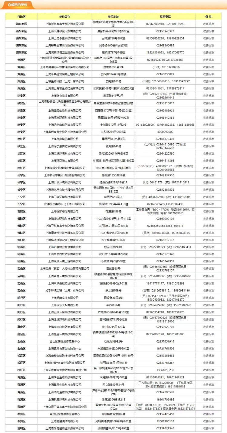 上海市物业管理行业协会白蚁防治专业委员会的成员单位已将收费价格在市房管局官网和“上海住宅物业网”上公示。