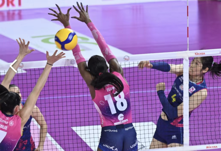刚刚过去的这个周末,在意甲女排半决赛上,面对意大利多位国手云集的米兰女排,斯坎迪奇整场比赛压制对手,依靠朱婷和安特罗波娃的超级发挥,最终以3比0取得完胜,三局比分为25比23、25比22和25比22。