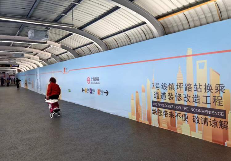 同样正在改造的,还有镇坪路地铁站换乘通道。该通道的换乘路线没有变化,而是靠近马路一侧封闭施工。