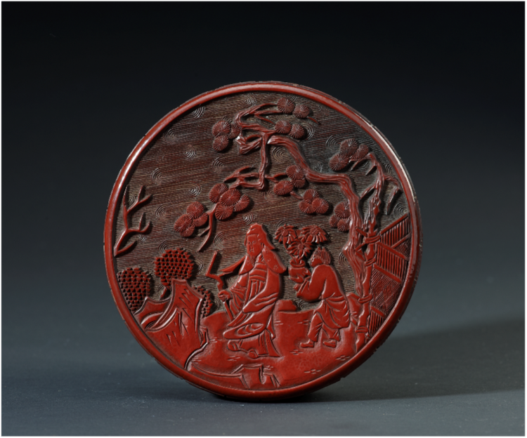 剔红东篱采菊圆盒 上海博物馆藏