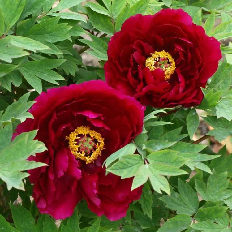 进入园内,绿池水系旁,种植的是中原牡丹品种。古人云:“谷雨三朝看牡丹”,但在上海地区,气候较洛阳、菏泽等原产地更为暖和,故上海地区的中原牡丹通常在清明时节绽放。中原牡丹相较于其它品系,花色最为丰富,有黑色品种“墨润绝伦”,绿色品种“绿幕隐玉”,正红品种“大红宝珠”、“鲁菏红”等,还有复色品种“二乔”等。花型多样,主要有台阁型、蔷薇型、绣球型等,形态也更为丰韵,在茂盛的绿叶衬托之下,更显华贵。