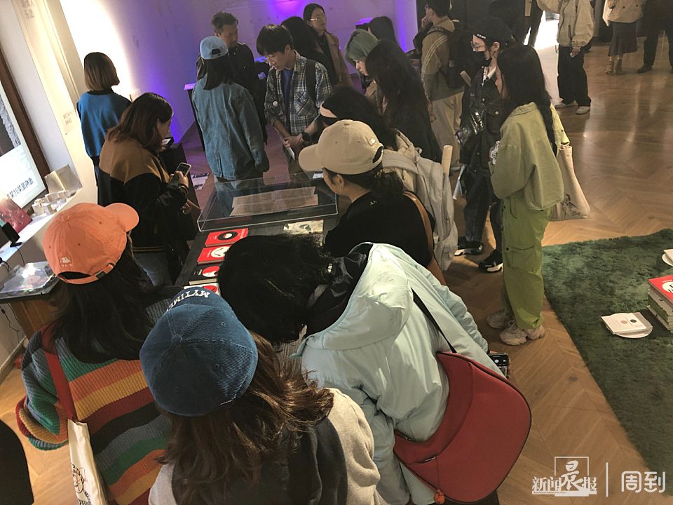 记者注意到,展览外面的小黑板每日都会更新互动玩法,有时是限量图书盲盒领取,有时是关注或打卡送限量文创。周末11点开门的展览,刚过10点就已排起长龙。在“小红书”上搜索“虚构集”,已有大量素人读者的好评与分享。据统计,自3月30日展览正式开放起,上海译文出版社天猫旗舰店增粉速率达到了平日的两倍。