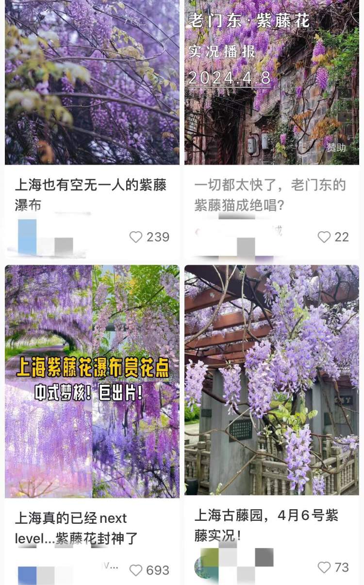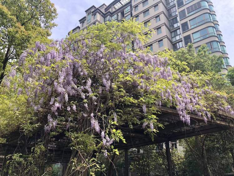 “紫藤热”出现后,一些公园、果园等新栽种了紫藤,通过三五年的培育,如今景观效果也相当不错。同时,一些过去名不见经传的紫藤也被网友们挖掘出来,比如小区车棚上的紫藤。这两天的社交平台上,关于上海及周边南京、海宁等地紫藤的打卡报告不少,市民也可以作为出门赏紫藤的参考。