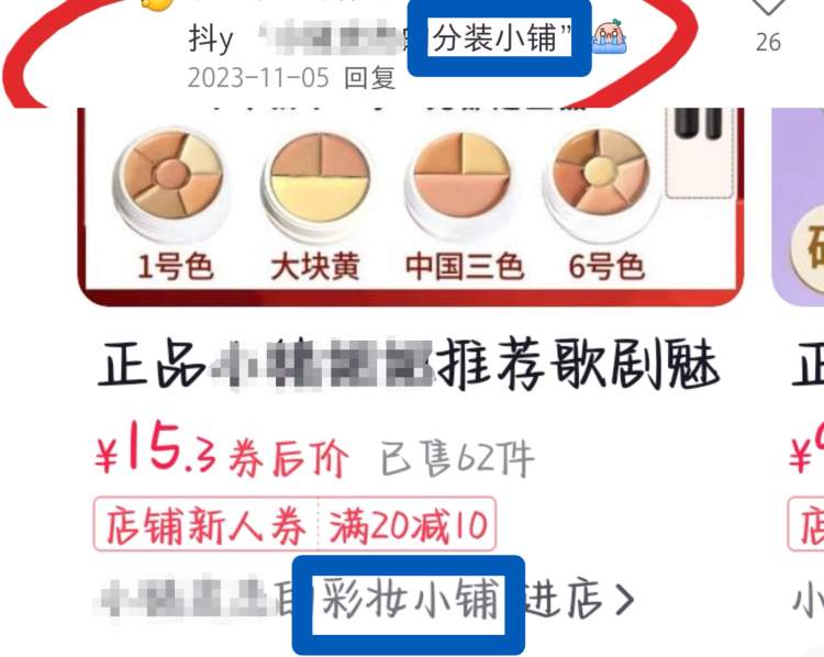 还有店铺隐藏得更深。在一些讨论分装化妆品的网友交流贴下,时不时会有网友以评论方式来交流一些分装网店。记者注意到,一家去年被提及过的“xxxx的分装小铺”的抖音店铺,如今已改名“xxxx的彩妆小铺”,但仍在销售分装化妆品。