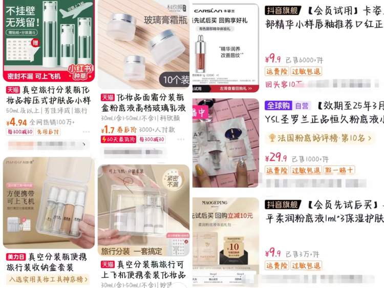 近日,抖音电商运营团队发布相关公告,让“化妆品分装小样禁售”重回人们视线,一度冲上热搜。在我国《化妆品监督管理条例》等法律法规要求下,淘宝、抖音等平台在过去数年前纷纷出台相关措施叫停分装化妆品的销售,然而实际情况却屡禁不止。尽管陆续有消费者反映,他们在购买分装化妆品时遇到了“假货危机”“售后风波”等麻烦,但与此同时,仍有少数购买者“上头”分装化妆品,认为其小份装更符合自身需求。