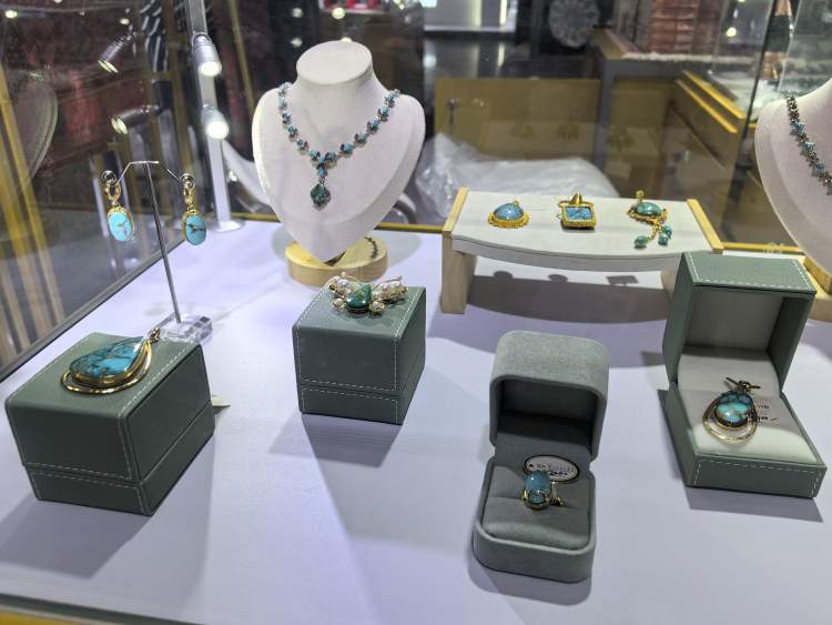 绿地全球馆位于消博会1号馆数字和服务消费品展区1D01,展台以“一带一路”为主题,融入国别特色商品、服务及文旅元素,总面积超过500平方米,展示来自30个国家和地区近100个海外品牌2000余款进口商品,展品涵盖高端食品、酒饮、工艺品、珠宝、服饰、箱包皮具、鞋履、美妆个护、家居生活等10余个品类,其中乌兹别克斯坦手工钩绣服饰、叙利亚吹制玻璃制品、巴基斯坦骆驼皮灯、加拿大斑彩螺、蒙古国羊肉香肠等均为首发新品。