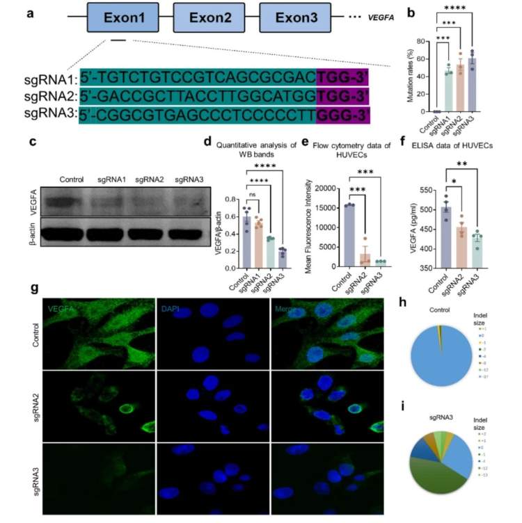 血管内皮生长因子是血管生成过程中的关键调控因子之一。黄锦海、周行涛团队从临床需求出发,精准锁定促血管生成的关键驱动因子,利用前沿的基因编辑技术,筛选开发了一种针对血管内皮生长因子基因的CRISPR/Cas9基因编辑系统,达到从源头上抑制其表达的效果。在体动物实验数据表明,CRISPR/Cas9基因编辑系统能够通过一次性治疗,不仅能够在体外表现出显著的抗血管功能,更能在体内成功抑制由角膜缝线引起的血管内皮生长因子表达上调及角膜新生血管形成过程,展示出了持久且安全的抗新生血管疗效。
