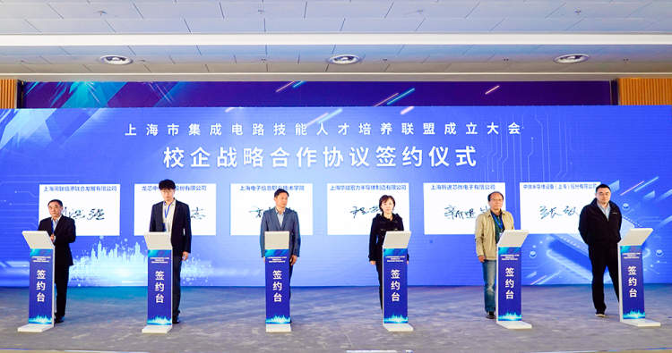 上海市集成电路技能人才培养联盟是在市教卫工作党委、市教委的关心指导,以及相关企业、协会、行业专家等各方的大力支持下,由上海电子信息职业技术学院与上海市集成电路行业协会、华虹宏力、闵联临港、华力微、龙芯中科、中微等企业以及复旦大学、上海大学等高校共同发起。联盟的成立,是推进教育、科技、人才“三位一体”融合发展战略工作和坚决贯彻落实国家、上海市关于集成电路产业发展决策部署的实际行动。