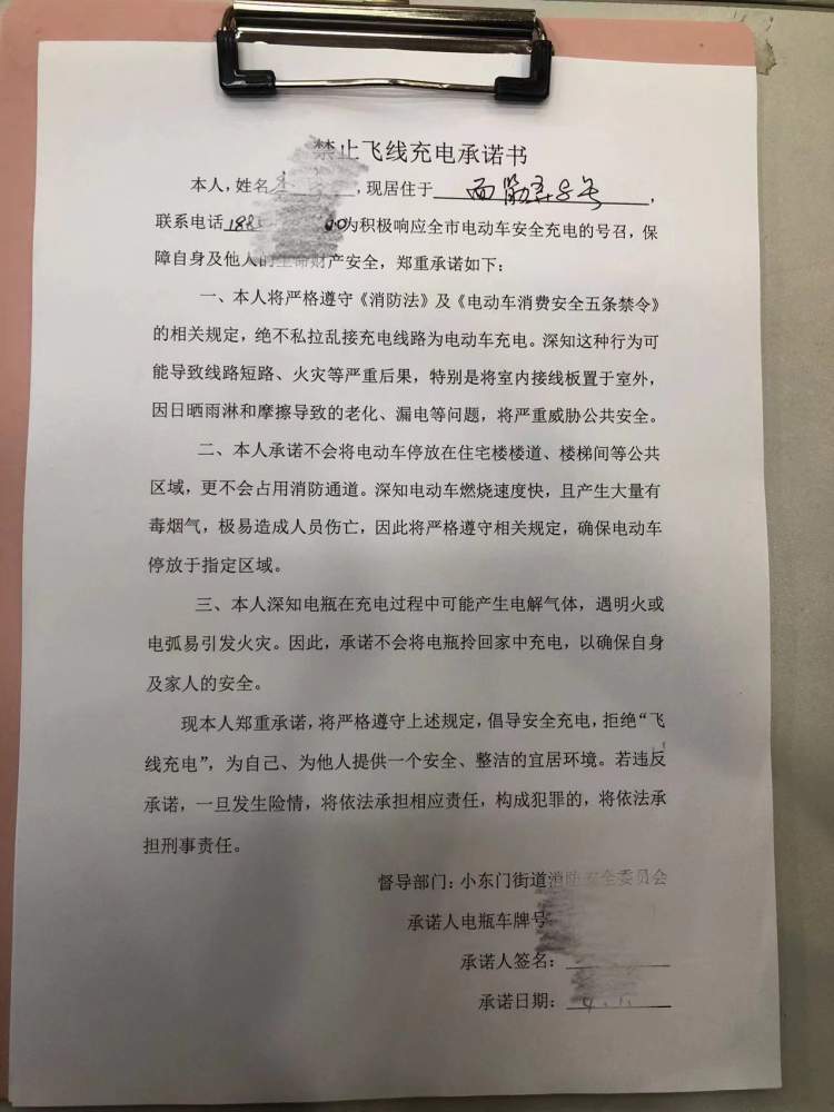 此外,街道还利用路边空地等资源,设置了智能充电桩,同样是1元钱可以充电5小时。“为了鼓励居民到公共充电位充电,我们在居民第一次充电时还赠送30元储值卡。同时,为了安全起见,要求每个人签署充电安全承诺书。”沙继春介绍。