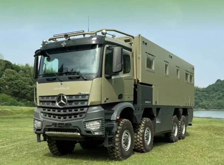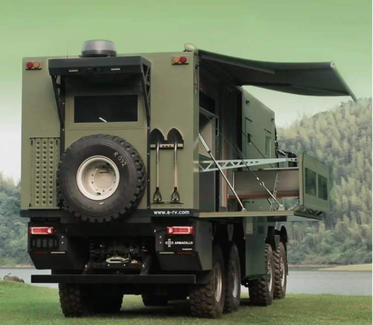 现场最贵的一辆房车价值千万级,这辆房车是高端越野房车,可以在恶劣路面行驶,在全球首创侧开方式拓展空间,起居空间拓展至25.5平方米。车内、车外均配有50英寸电视机,露台区域还带有品牌烧烤炉。房车内有独立双人主卧、品牌厨卫,还有智能化控制系统。