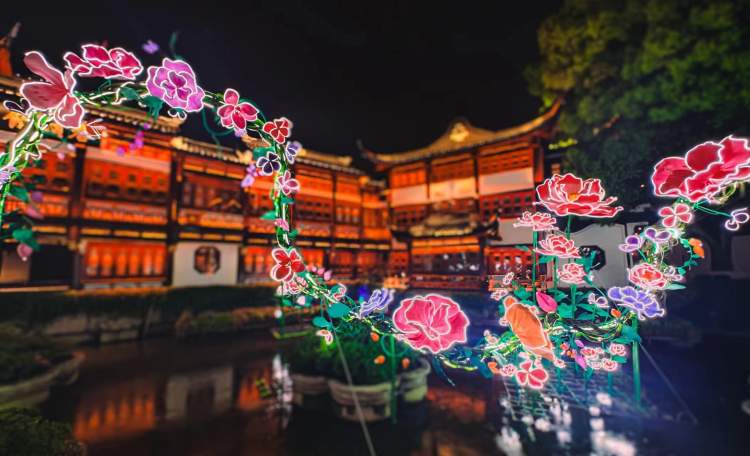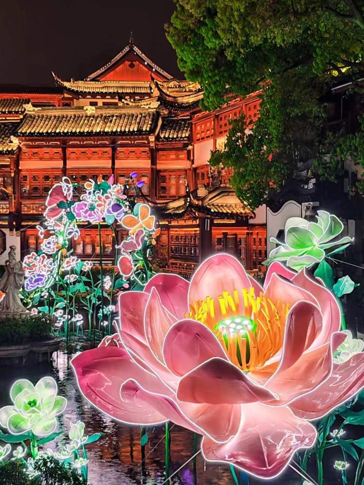 4月12日至4月27日,豫园“节气江南·仲春花朝节”再度回归,尤其每到晚上,夜幕之下花灯璀璨,豫园灯会之后九曲桥畔竟还有如此美丽的灯火可赏。
