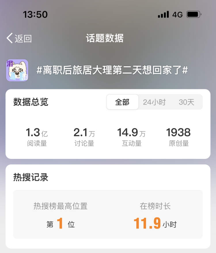 近日,“离职后旅居大理第二天想回家了”的话题在微博上一度登顶热搜榜首。