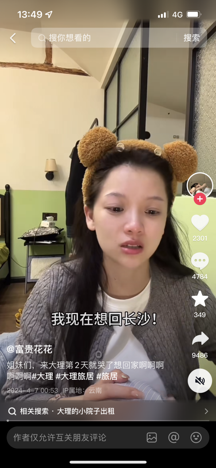 来自湖南长沙的98年妹子“富贵花花”(抖音账号)在视频里哭诉,称自己和男友两人辞职来到大理旅居,却因为找不到合适的房子而面临不得不回老家的尴尬。网友的反应这次出奇一致:在什么都不了解的情况下冲动裸辞,纯属自作自受。