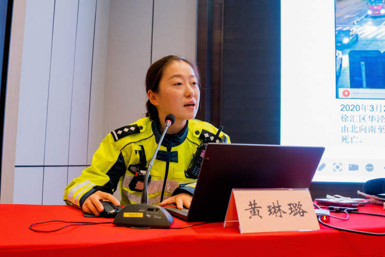 4月12日,来自浦东公安分局交警支队一大队东方明珠女警中队的民警黄琳璐来到退役士兵安全教育培训活动现场,为台下的退役士兵们详细讲解交通法规、安全驾驶知识以及应急处理措施。