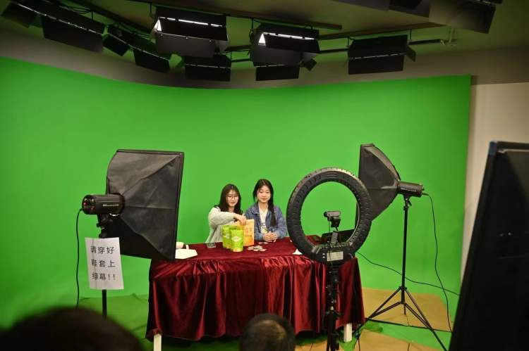 4月14日,上海市商业学校电商直播实训室内热闹非凡,学校“2024校园数字商贸节”活动迎来了最后的环节——六组学生分别代表着六家直播企业,在直播镜头前推介各自的产品。直播通过企业的网络平台在校内传播,是真实的直播平台,全网可以观看的,最终有超过3000人次观看。