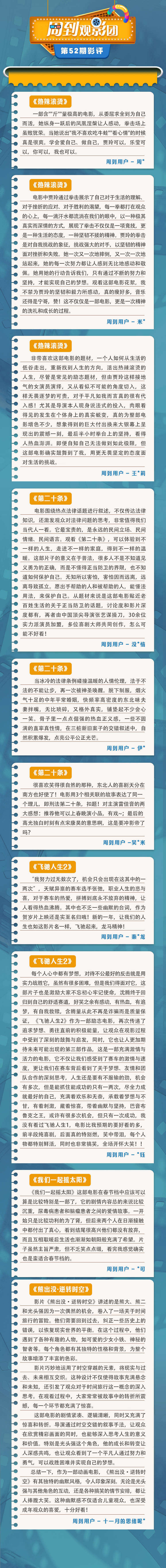 周到观影团052期,我们邀请影迷们一起来聊聊春节档影片的观后感~从中我们精选了10条影评,一起来看看他们怎么评价春节档影片…