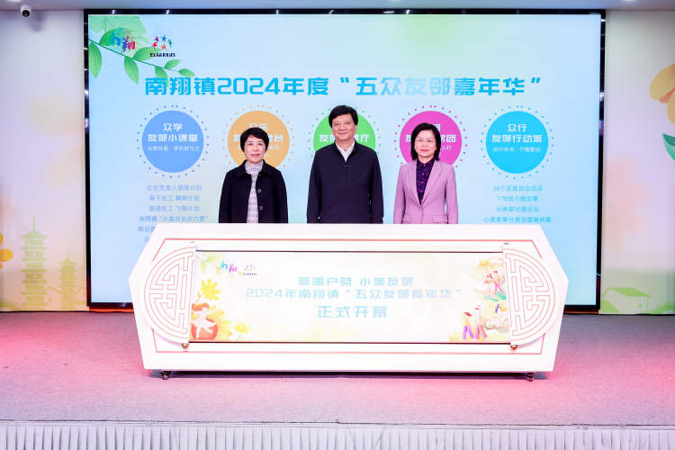 丁炯炯、王方文和姜小静共同为2024年南翔镇“五众友邻嘉年华”开幕