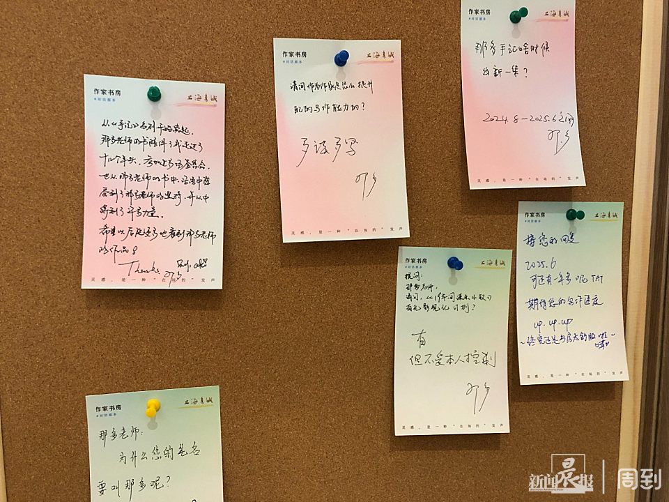 记者4月15日来到位于上海书城二楼的“那多书房”。在书房内,有一个“作家信箱”区域,上面有不少读者的留言,而作家也在4月14日就做了回复。对于“作家信箱”的功能,上海书城有一段说明: