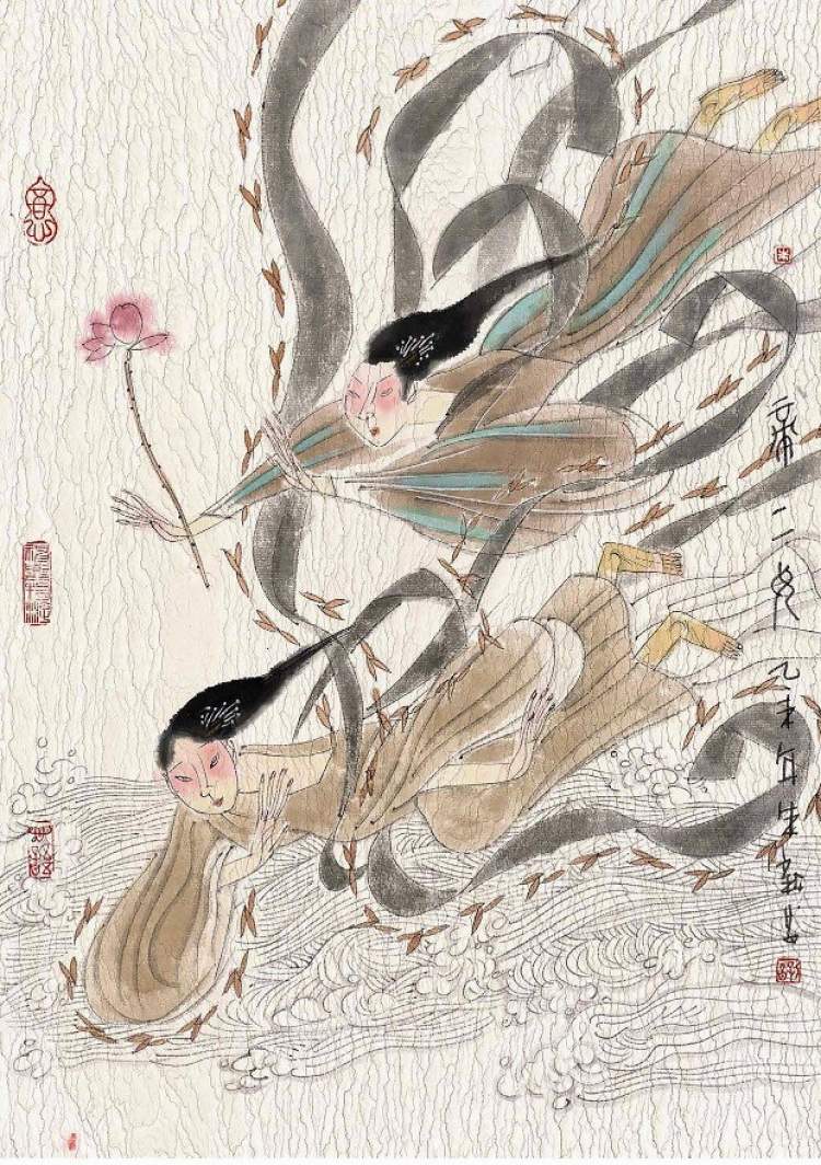 传统文学经典,是中国画里经常被画到的题材,朱新昌先生认为,我们这代人要有我们这代人的价值,在继承传统的基础上要有新的创造。画文学经典,不能画的面目全非,而是在前人的基础上有自己的面貌。我并不想画得太古,还是要适合现代人的审美观,要让将来的人看得出来,这是我们这个时代的作品。